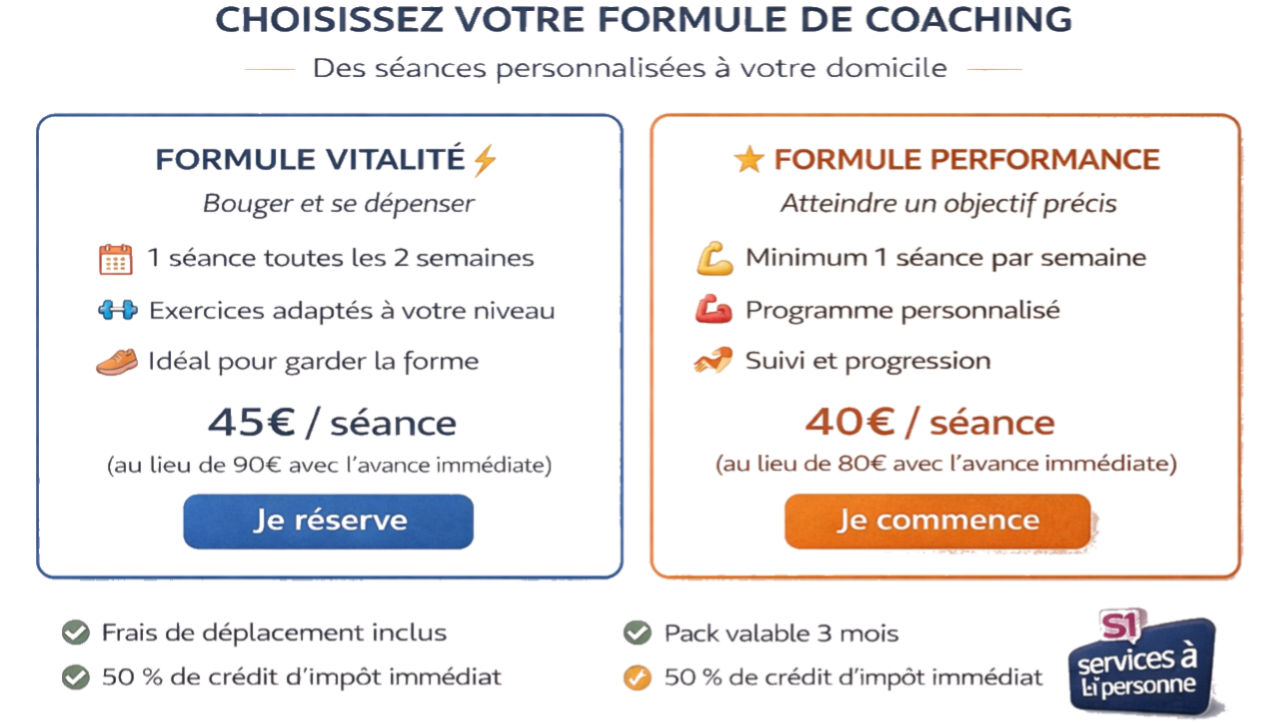 Les prestations de coaching sportif sont éligibles au Service A la Personne et vous permettent de défiscaliser 50% sur vos impôts. Elles doivent être pratiquées à domicile de manière individuelle ou dans le cadre familial. Lien vers la circulaire : Voir la circulaire Services à la personne du 11 avril 2019